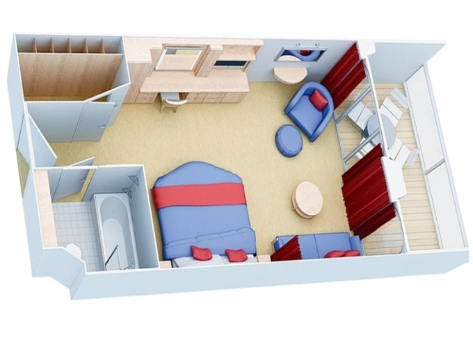 | 2J - Kajuta s balkónom Central Park View 17 m² + balkón 5 m² (výhľad na Central Park). 10. až 14. paluba. Max 2-4 osoby. | 6 484 € 1 621 € za osobu | ||