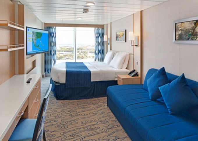 | 2T - Vnútorná kajuta s oknom / Promenade View 18 m². Neotvárateľné okno (výhľad na Royal Promenade). 7. paluba stred, vzadu. Max 5 osôb. | 3 736 € 1 868 € za osobu | ||