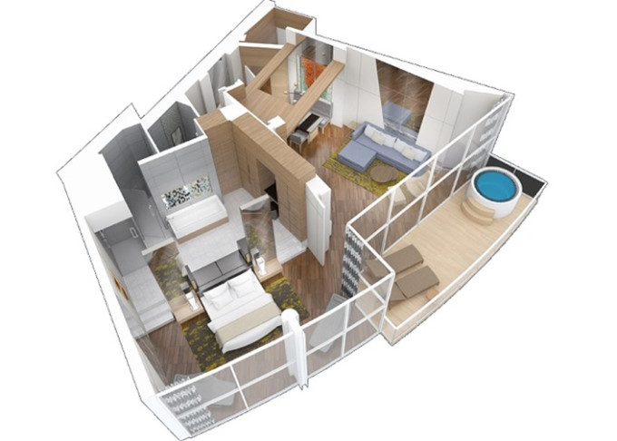 | A2 - AquaTheatre Suite s balkónom / 2 spálne 62,5 m² + balkón 56 m². 9,10. paluba vzadu. Max 8 osôb. Výhody Royal Suite Star Class. | 27 933 € 9 311 € za osobu | ||