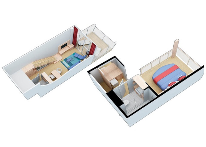 | L1 - Crown Loft Suite s balkónom 50 m² + balkón 10 m². 2-podlažný apartmán. 17. paluba. Max 4 osoby. Výhody Royal Suite Sky Class. | 12 776 € 6 388 € za osobu | ||