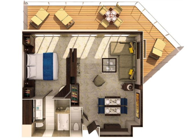 | J4 - Junior Suite s balkónom 25 m² + balkón 7,5 m². 6. až 13. paluba. Max 4 osôb. Výhody Royal Suite Sea Class. | 11 456 € 11 456 € za osobu | ||