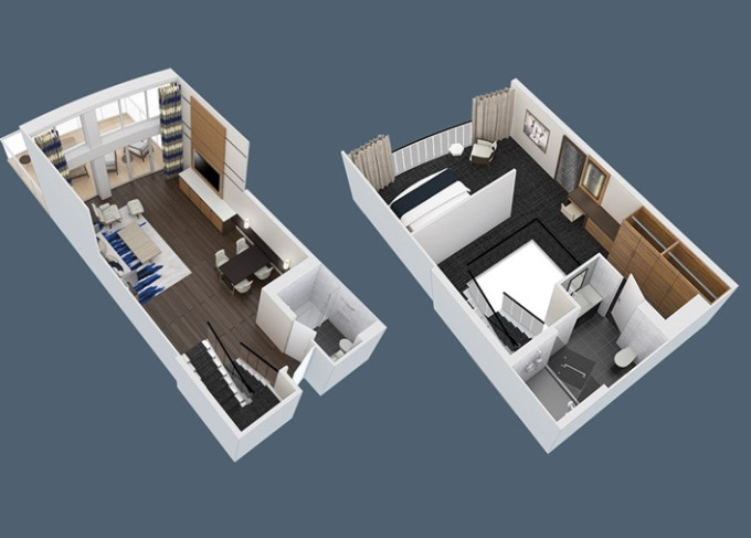 | OL - Owner Loft Suite s balkónom 90 m² + balkón 46 m². 2-podlažný apartmán, 2 spálne, 2 kúpeľne. 8. paluba. Max 4 osoby. Výhody Royal Suite Class. | 37 700 € 9 425 € za osobu |